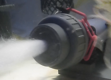 The system is installed directly in the pond where the water is recirculated and introduced into a gas injection chamber. The minimum required gas pressure is 10 psig.