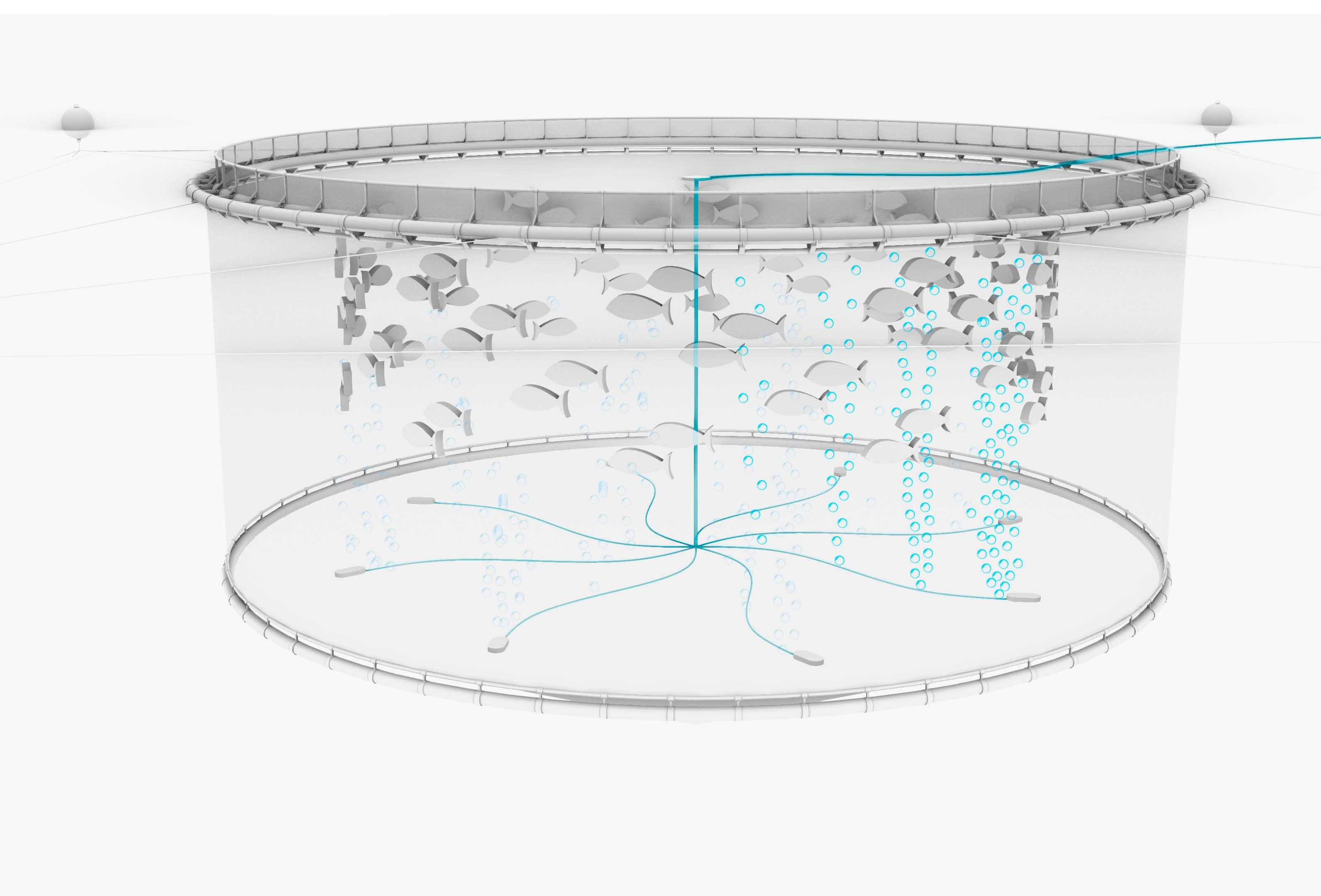 Is the ideal Oxygen/Ozone transfer system for sea cages where the injection depth is approximately 10 meters.