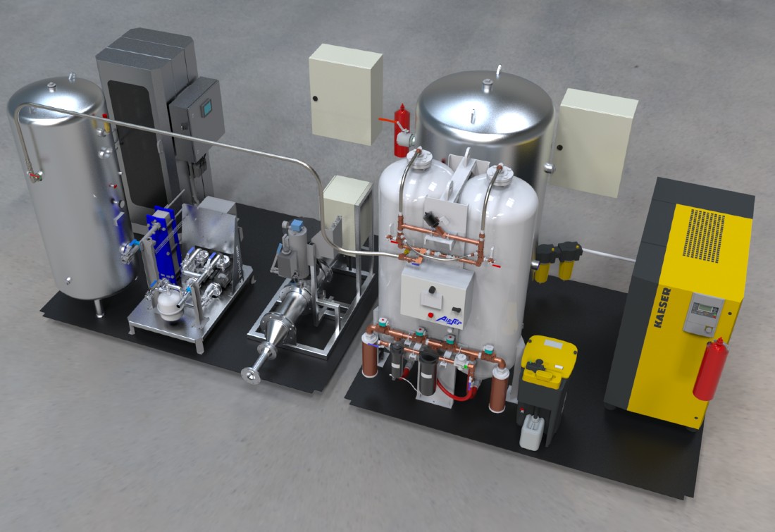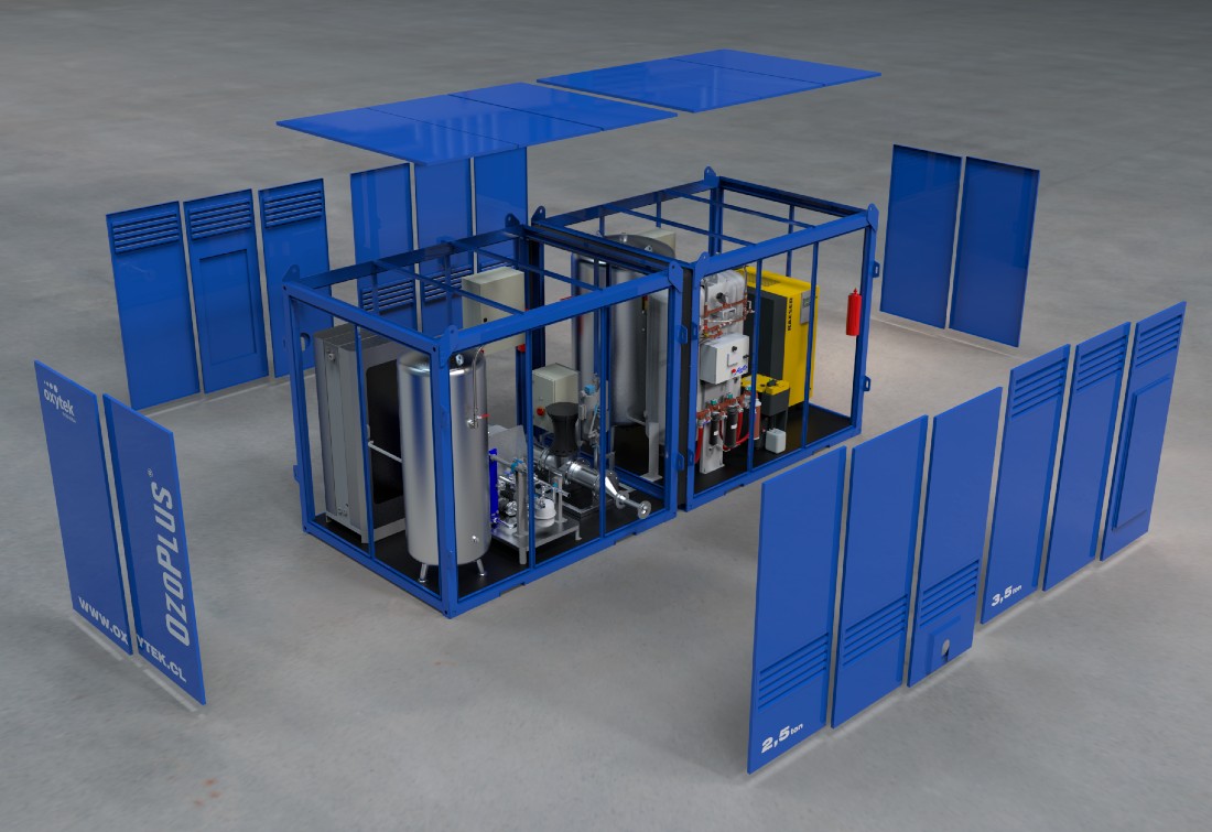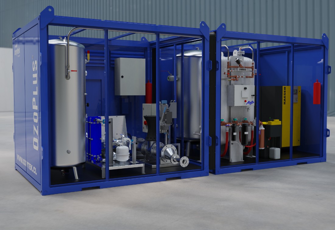 Despite its small footprint (6 x 2.4 m), Ozoplus is capable of producing up to 2.9 kg/h of ozone at a 10% concentration.